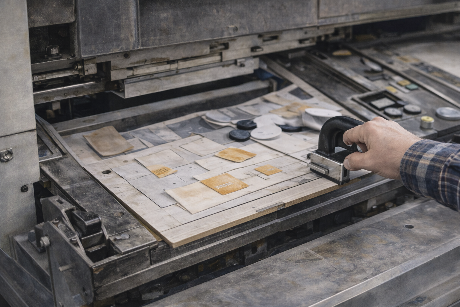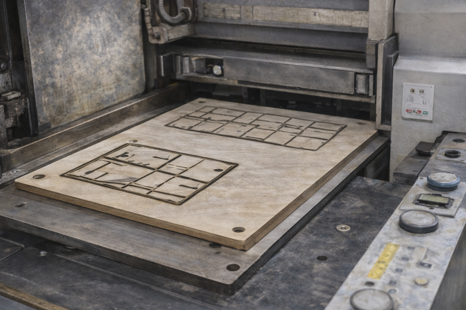 トムソン型をセットし、位置合わせとテスト加工を行います。